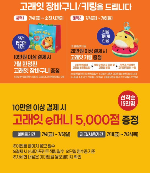 - 선착순 150,000명 대상으로 5,000원 e머니 지급 (7/11~24 사용 가능)